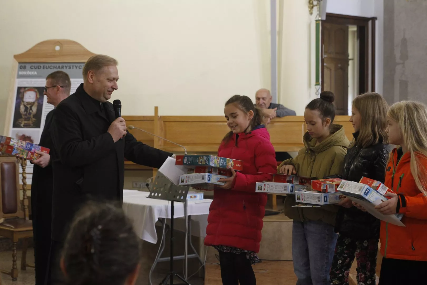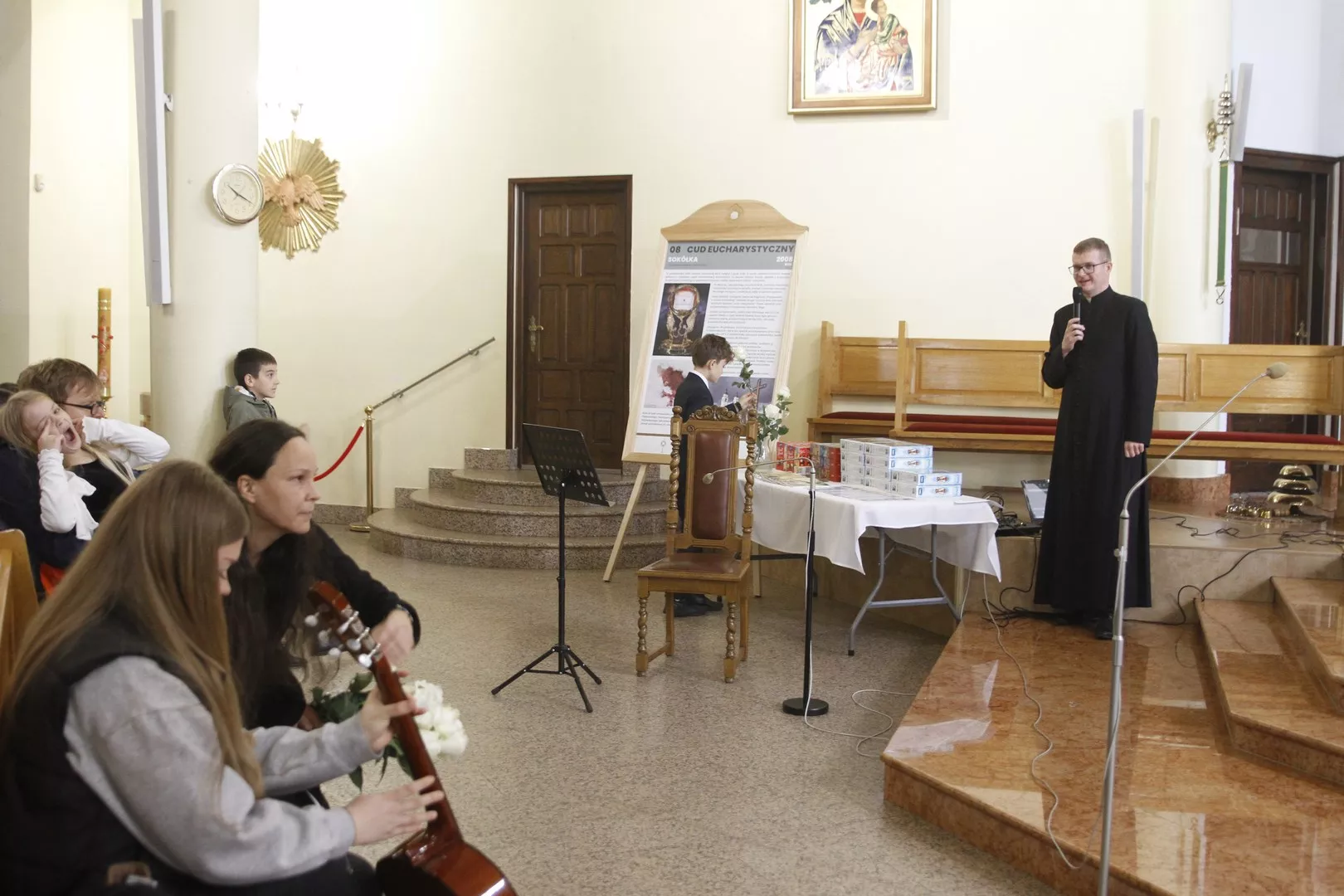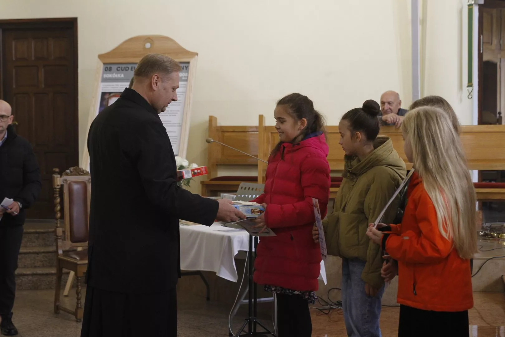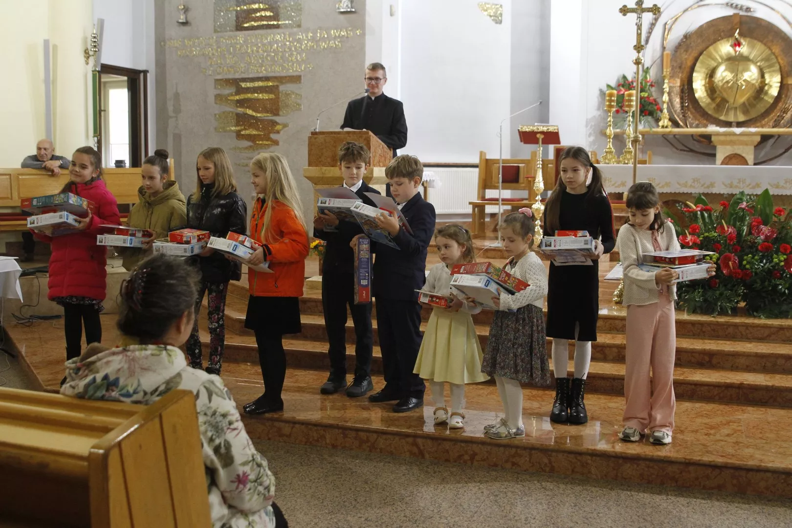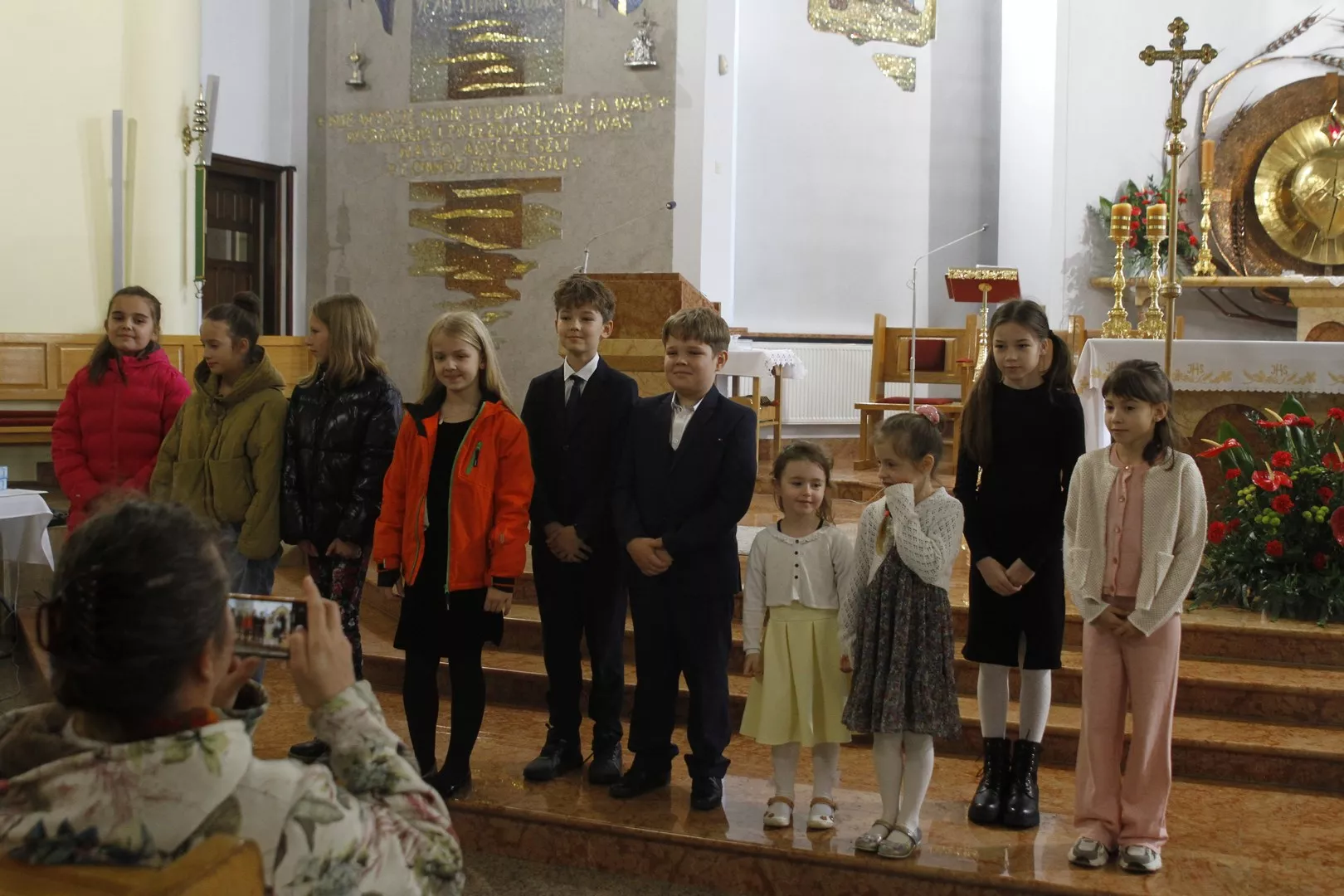Na IV przeglądzie Pieśni Maryjnych, który odbył się 26 października po Mszy Świętej o godz. 9.00 w naszej parafii, Ksiądz Mariusz Nejranowski na początku powitał wszystkich uczestników i tych, którzy po Mszy św. pozostali, aby wysłuchać pieśni. Zaśpiewano dziewięć pieśni.
