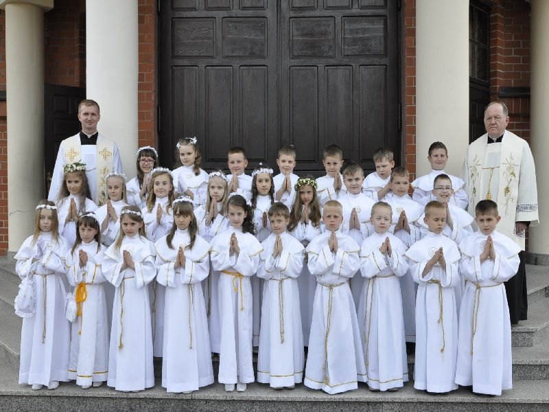 Dzieci pierwszokomunijne modlą się za swoich rówieśników
