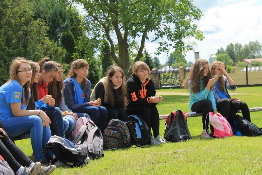 Po dotarciu na miejsce udaliśmy się na Mszę Świętą podczas, której dziękowaliśmy Matce Najświętszej za szczęśliwie przebytą drogę oraz za zmierzający ku końcowi rok wspólnej pracy, zabaw i formacji. Po zakończonej Eucharystii ciesząc się pogodą, która znacznie się poprawiła udaliśmy się za mury klasztoru, gdzie był czas na chwilę wspólnotowej rekreacji, kiełbaskę z ogniska i śpiew.