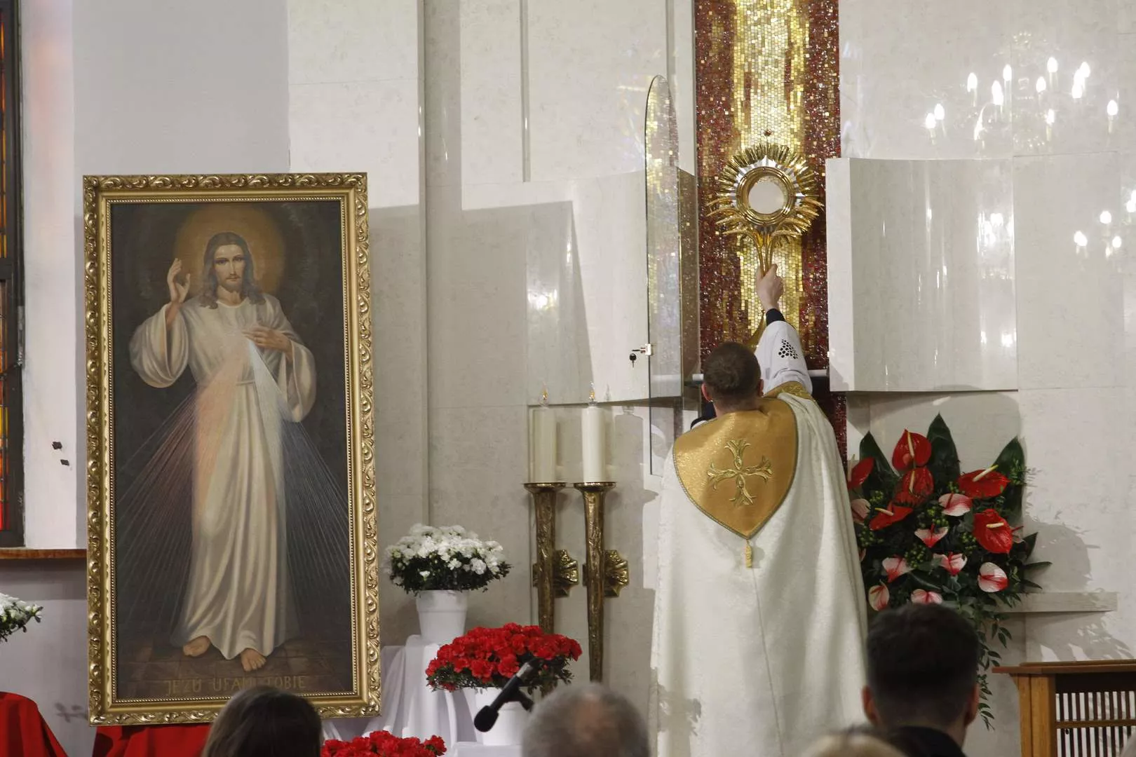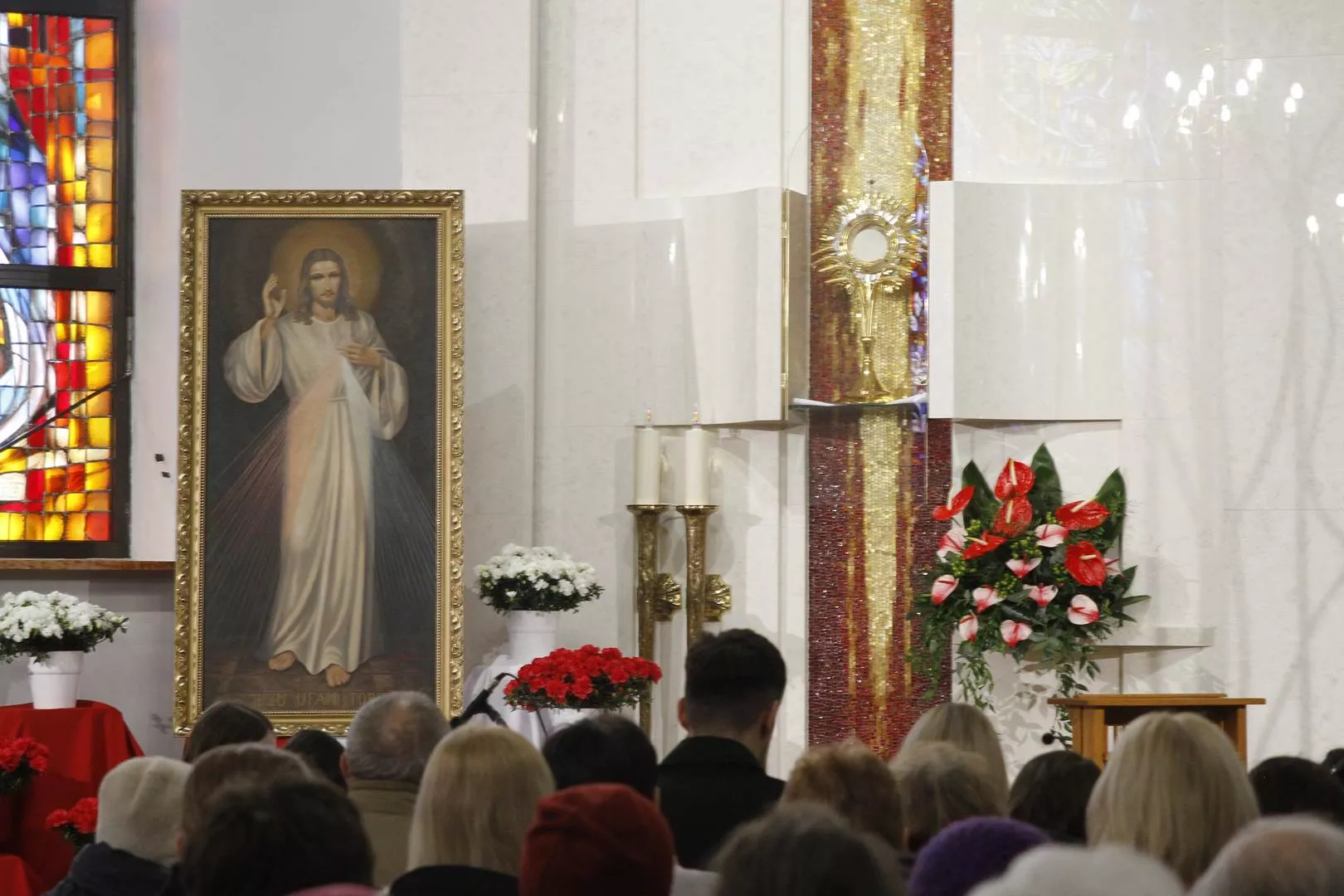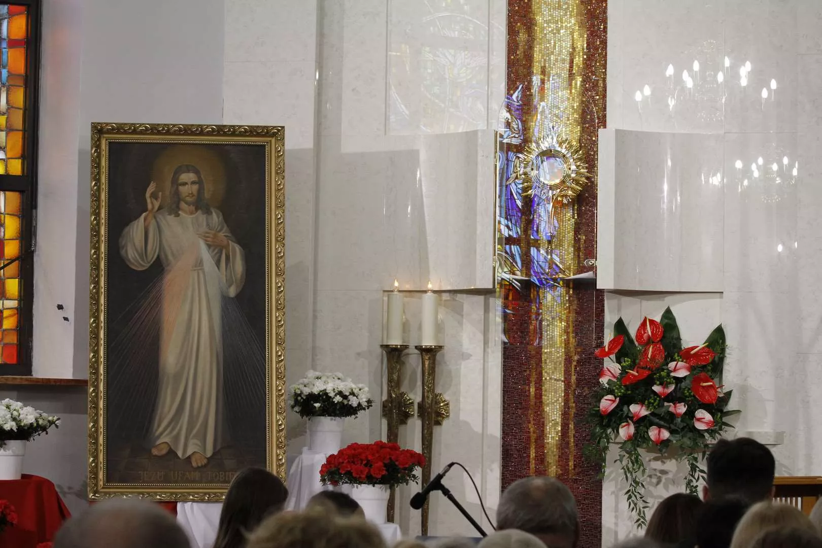 Wczoraj w Niedzielę Miłosierdzia w naszej odnowionej kaplicy o godz. 15.00 wspólnoty z Ruchu Światło - Życie wspólnie z księdzem Tomaszem poprowadzili Godzinę Miłosierdzia przed Najświętszym Sakramentem. Rozpoczęliśmy nią codzienne wystawienie Najświętszego Sakramentu w przygotowanej kaplicy adoracji. Najświętszy Sakrament będzie wystawiony do adoracji od poniedziałku do soboty od godz. 7.30 do 17.30. Wejście do kaplicy jest od zewnątrz, z lewej strony kościoła. Adoracja będzie odbywać się w ciszy, tak aby każdy mógł w głębi serca przedstawiać Jezusowi swoje prośby i dziękczynienia.