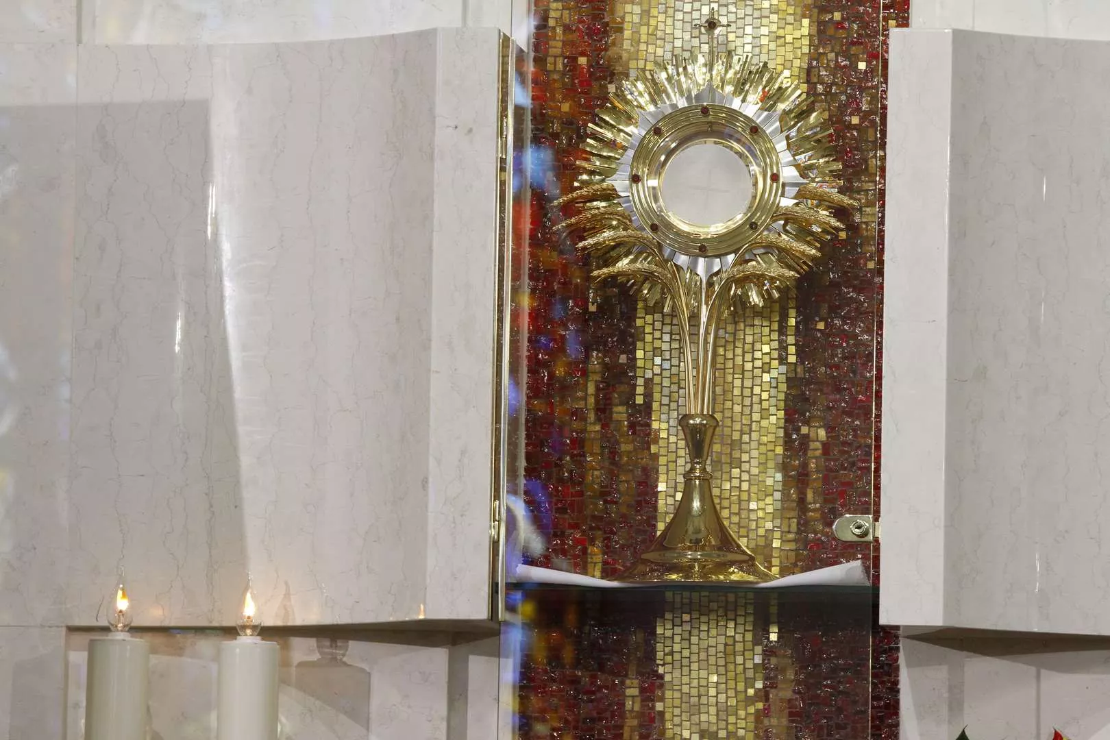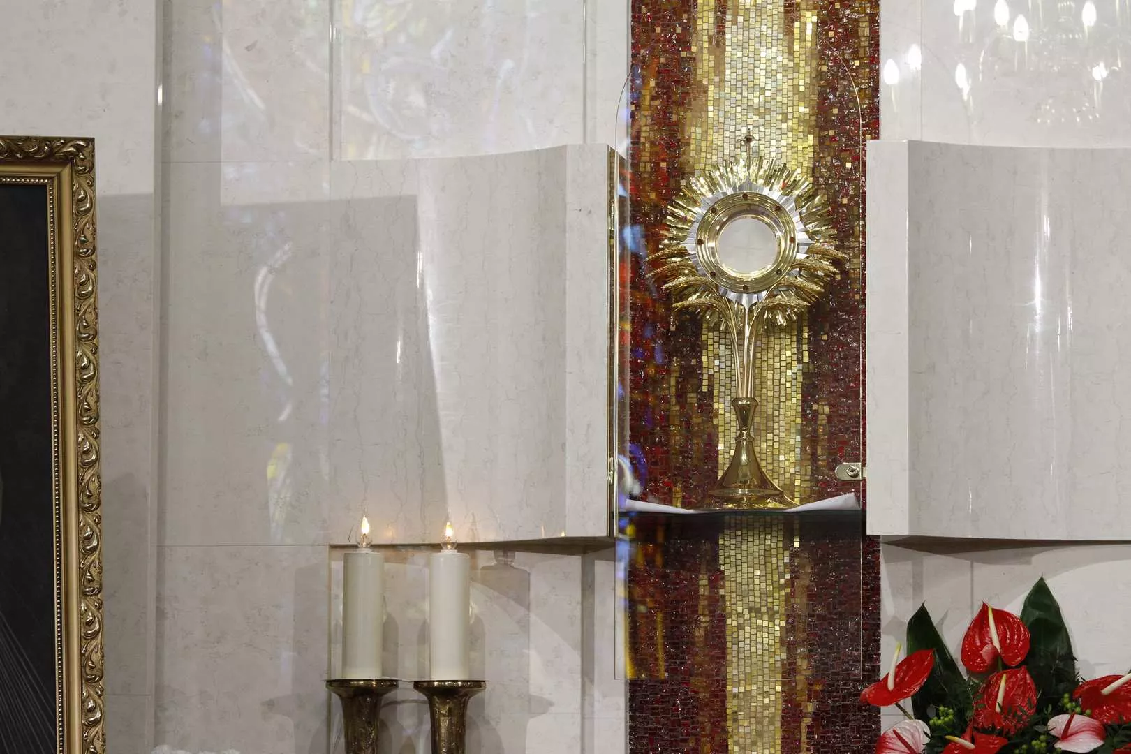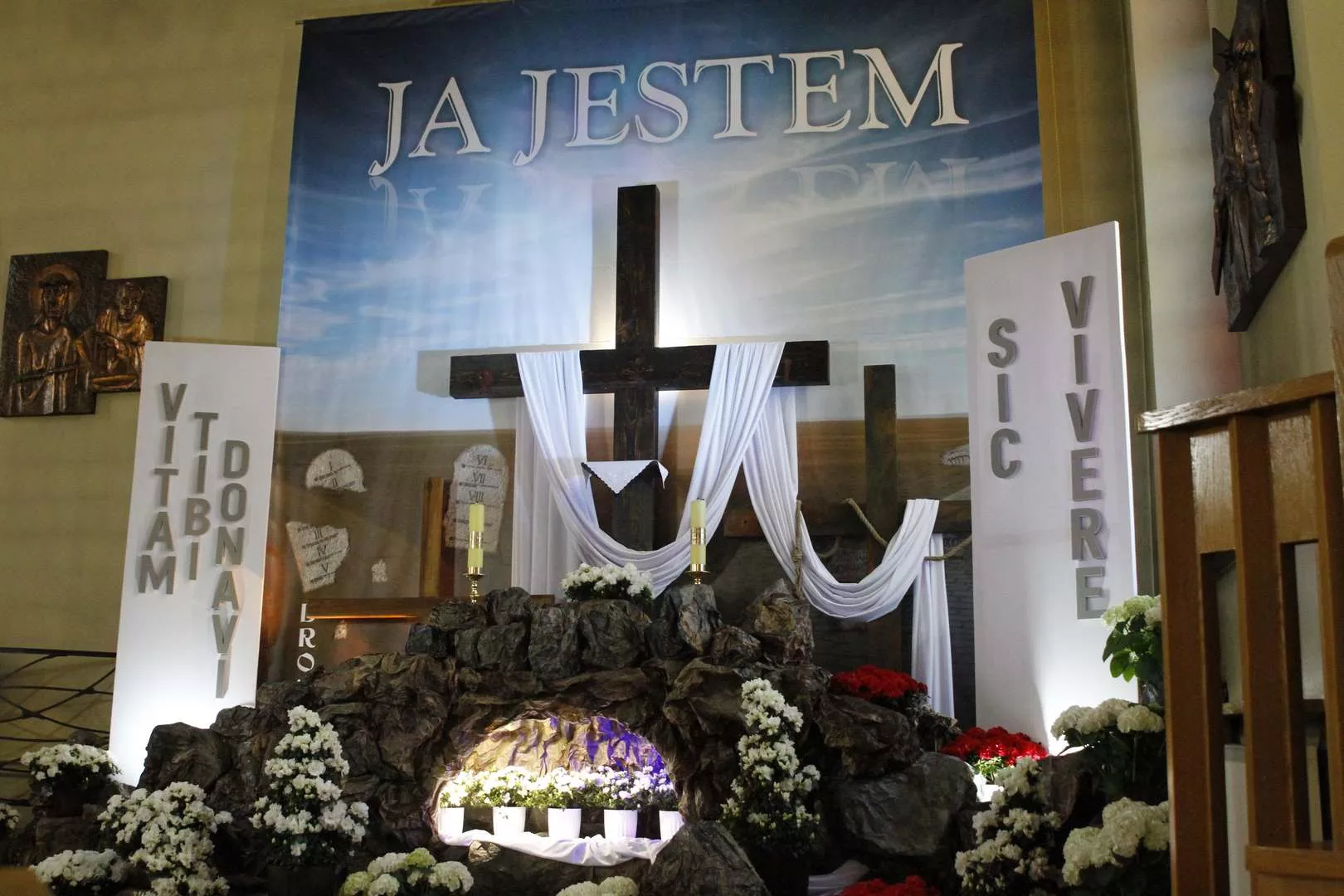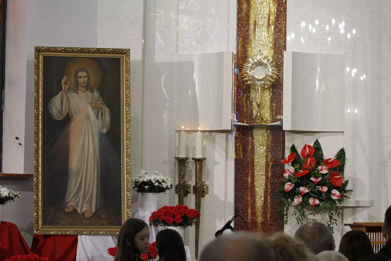 Wczoraj w Niedzielę Miłosierdzia w naszej odnowionej kaplicy o godz. 15.00 wspólnoty z Ruchu Światło - Życie wspólnie z księdzem Tomaszem poprowadzili Godzinę Miłosierdzia przed Najświętszym Sakramentem. Rozpoczęliśmy nią codzienne wystawienie Najświętszego Sakramentu w przygotowanej kaplicy adoracji. Najświętszy Sakrament będzie wystawiony do adoracji od poniedziałku do soboty od godz. 7.30 do 17.30. Wejście do kaplicy jest od zewnątrz, z lewej strony kościoła. Adoracja będzie odbywać się w ciszy, tak aby każdy mógł w głębi serca przedstawiać Jezusowi swoje prośby i dziękczynienia.